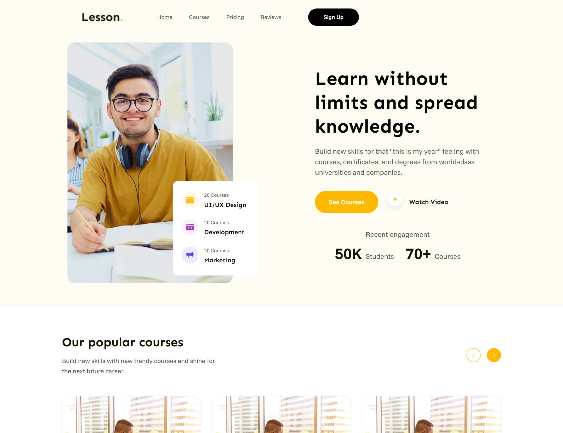 Modern workout website interface design featuring a bold and energetic visual layout